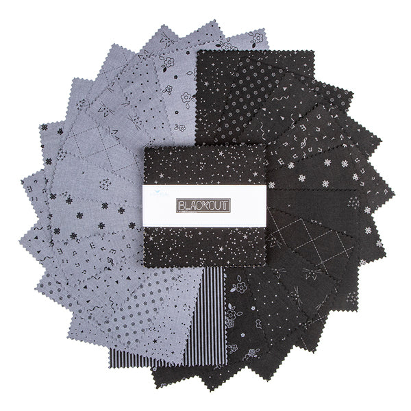 Includes (42) 5" squares, with duplicates, from the Blackout fabric collection by Riley Blake Designs.