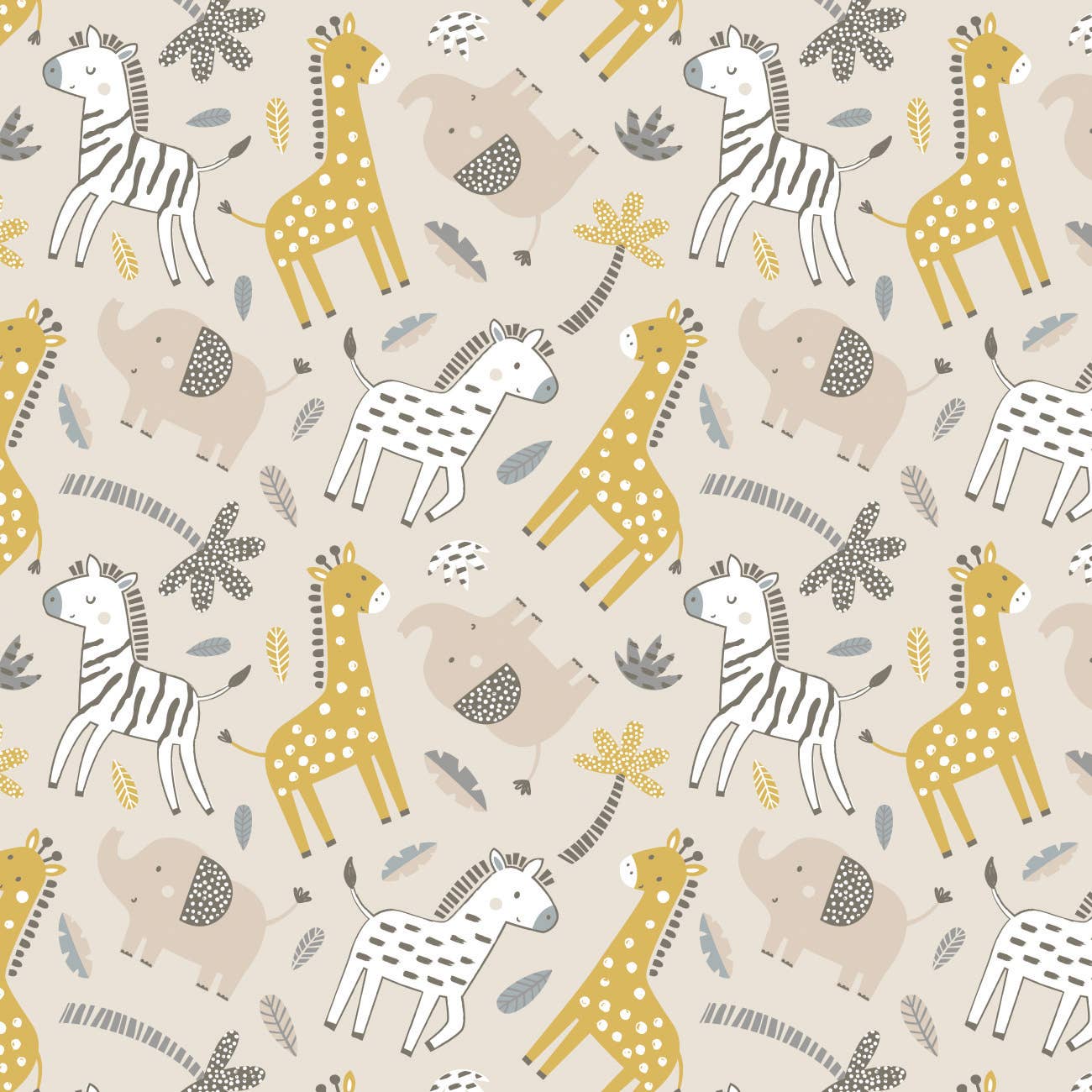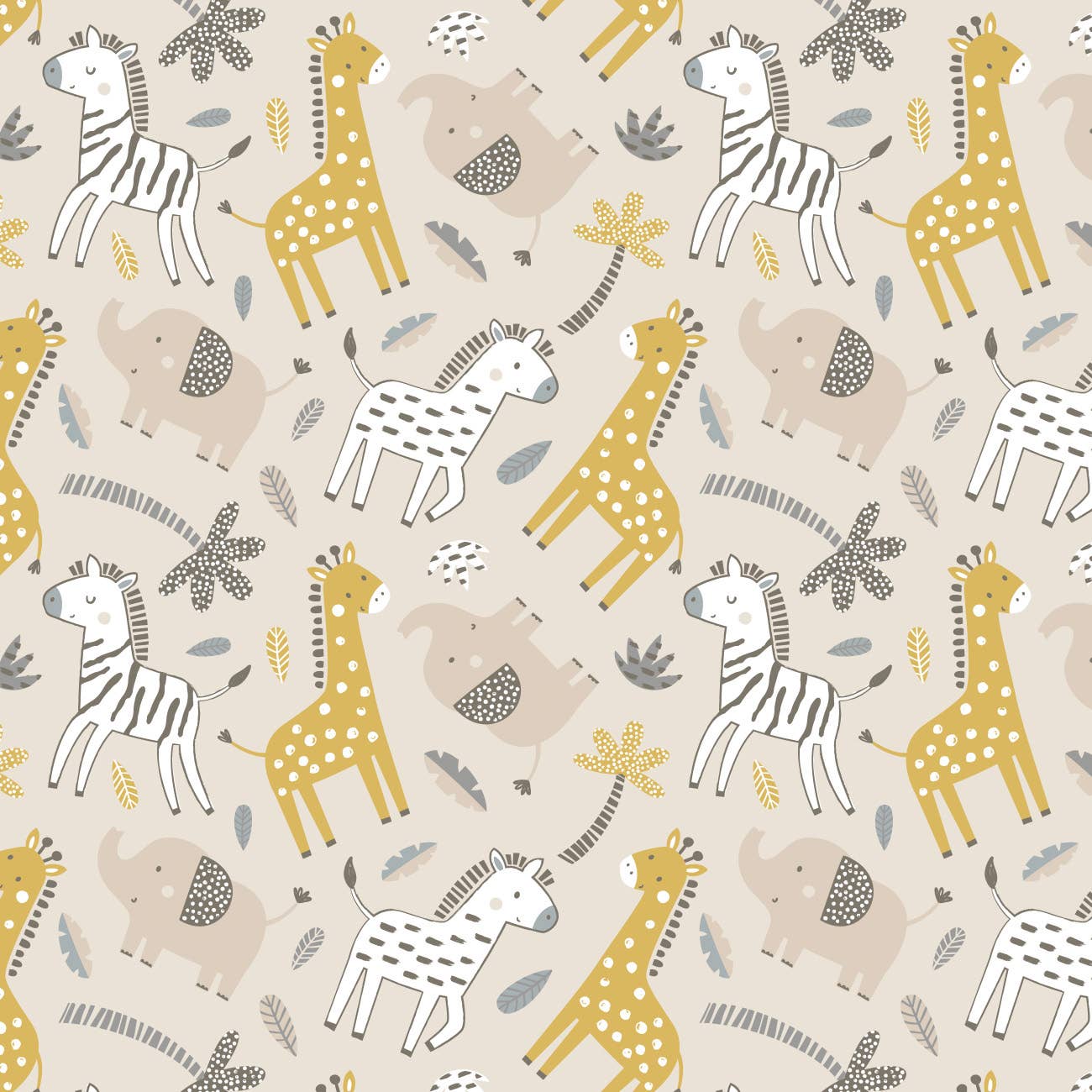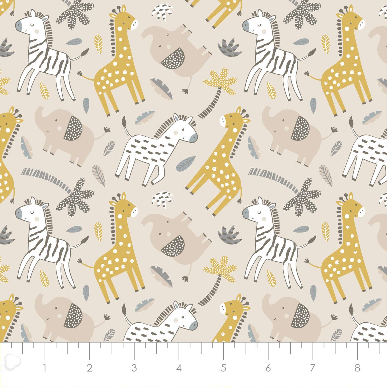 Featuring cute jungle animals in soft, neutral cream tones, this fabric adds a playful yet gentle touch to any creation. Perfect for crafting warm quilts, blankets, or apparel that bring a smile and comfort all year round.
