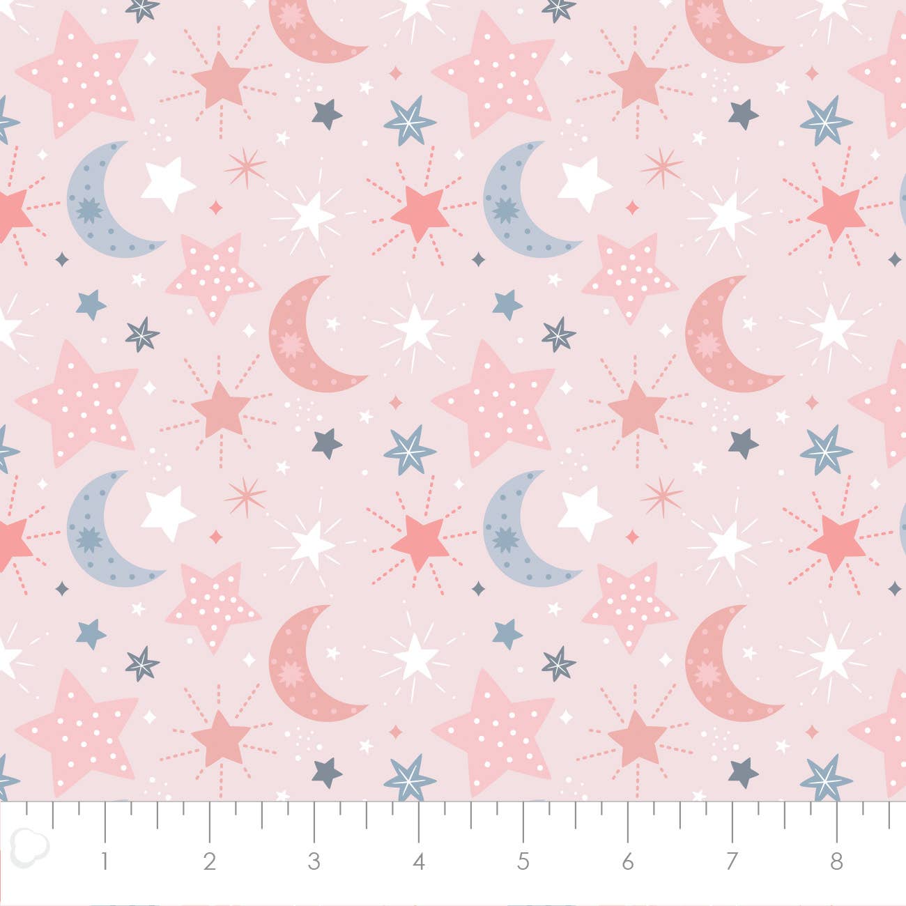This soft fabric features adorable stars and moons, perfect for sewing and quilting playful creations that sparkle with personality. Ideal for adding a touch of whimsy to blankets, pajamas, or any craft that needs a gentle, dreamy touch.