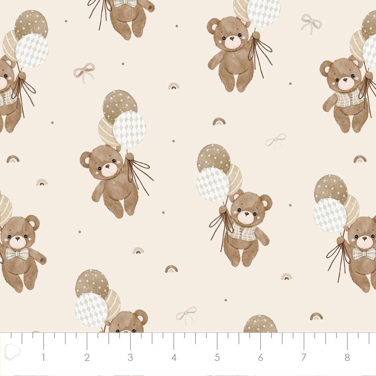 This charming flannel fabric features adorable teddy bears and cheerful balloons, perfect for creating cozy nursery quilts and sewing projects. Its soft texture and gender-neutral design make it an ideal choice for crafting cute, playful items that bring warmth and joy to any little one’s space.